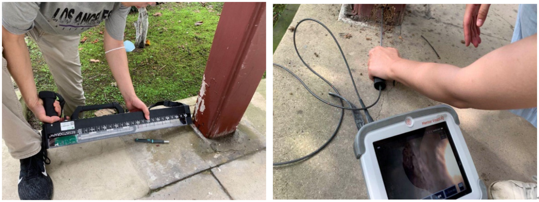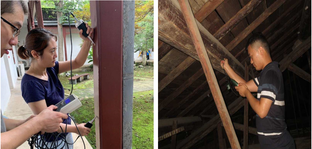 ▲木材阻抗仪及内窥镜看出木构件腐朽、蚁蛀病害