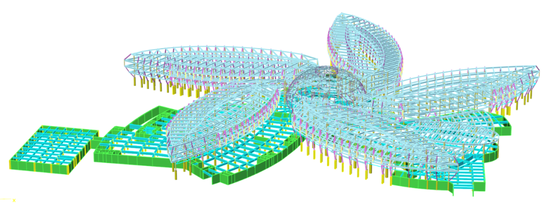 为了对酒店结构受力性能进行充分的分析评估,项目组对结构进行了整体建模: