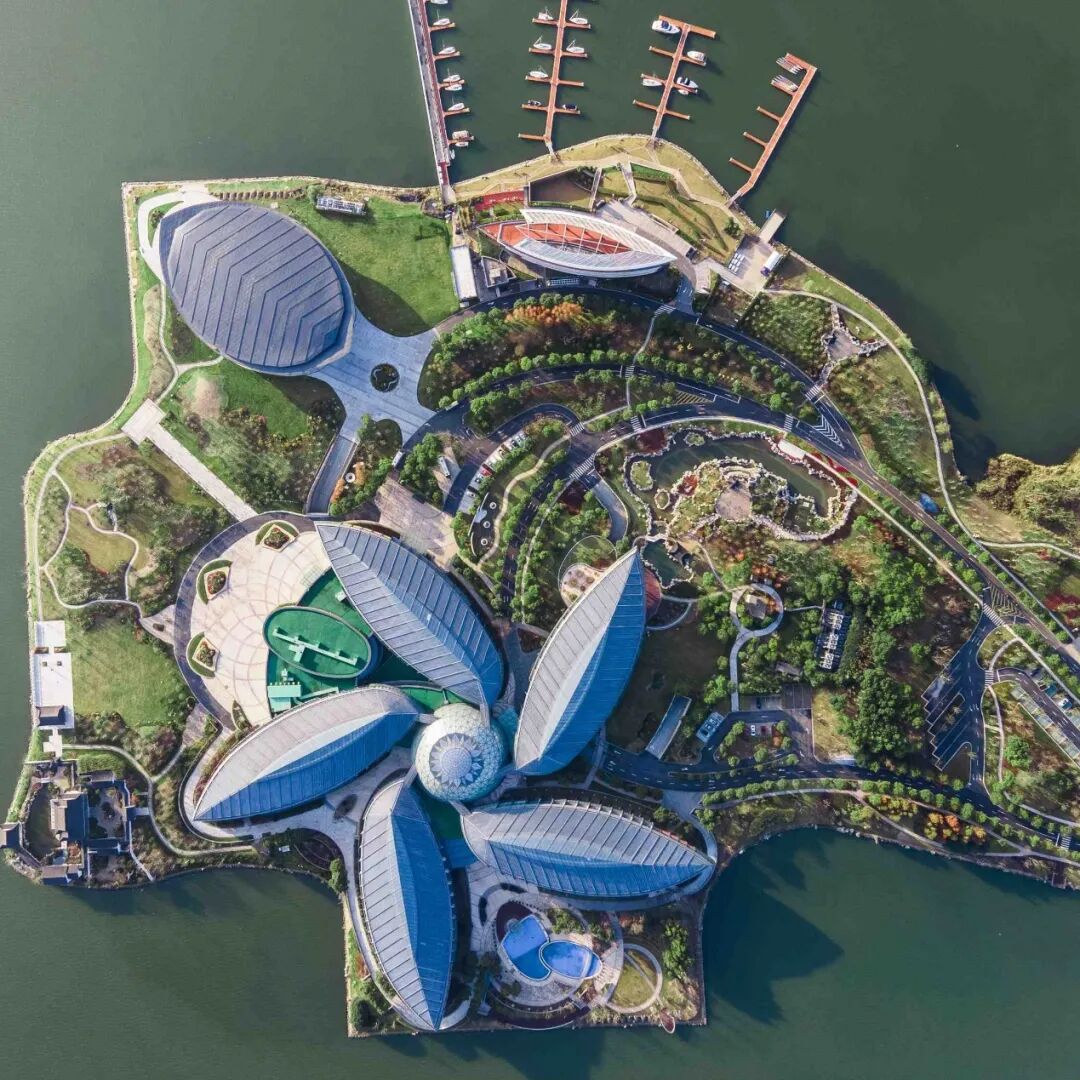 上海滴水湖皇冠假日酒店位于浦东新区临港新城美丽的滴水湖南岛之上,由曾经设计著名的迪拜帆船酒店的ATKINS设计公司操刀设计。其造型别致,宛若一朵桃花盛开在湖水之上。酒店坐拥整座滴水湖南岛,有近五万平米的花园绿地,临湖亲水,景致迷人。